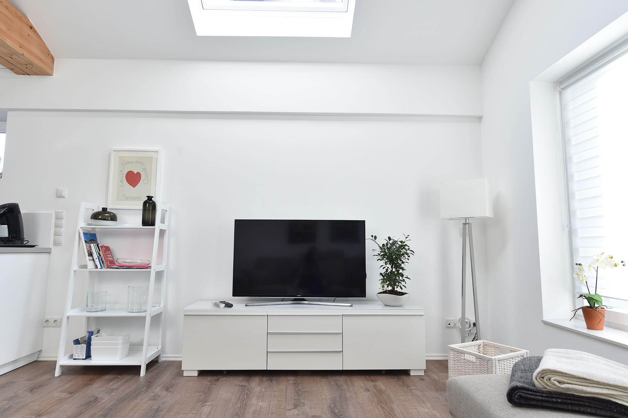 Schnelles Internet und WLAN sind im gesamten Wohnbereich vorhanden und in der Nettomiete enthalten, dazu sorgen Telekom EntertainTV und PS4 für Unterhaltung in Wohn- und Schlafzimmer. Lieblingssongs können überall im Wohnbereich gehört werden, indem das Smartphone via Bluetooth mit den hochwertigen Speakern verbunden wird.